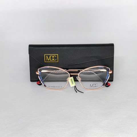 Armazón metálico. Presenta detalles a color en el frente. Patillas fijas (sin flex). Varillas metálicas, terminales en silo.